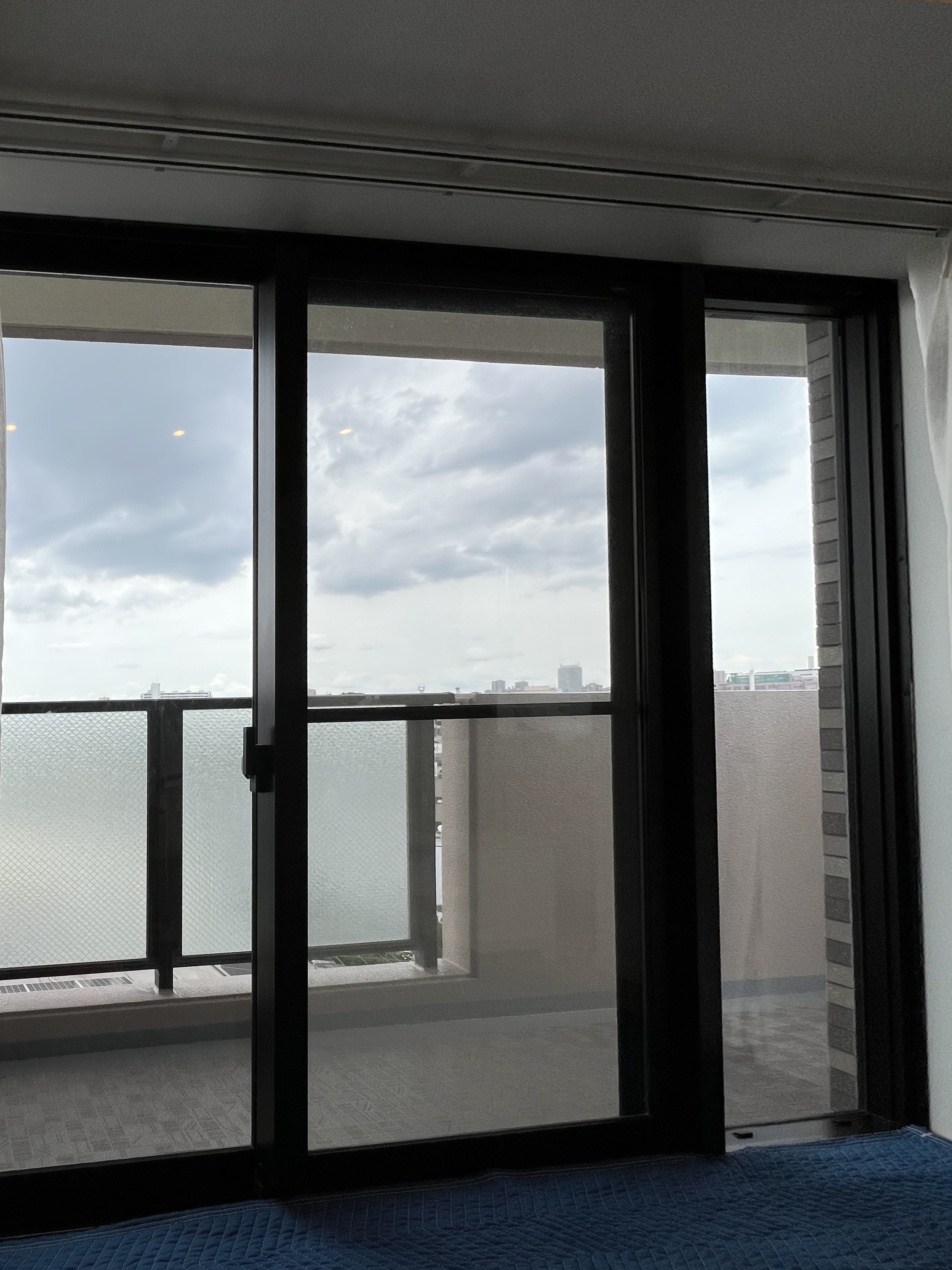 お子さんがいらっしゃるので安全対策として飛散防止フィルムをご相談いただきました。サンプルを見ていただき暑いので遮熱フィルムで・・・と遮熱フィルムをお選びいただきました。